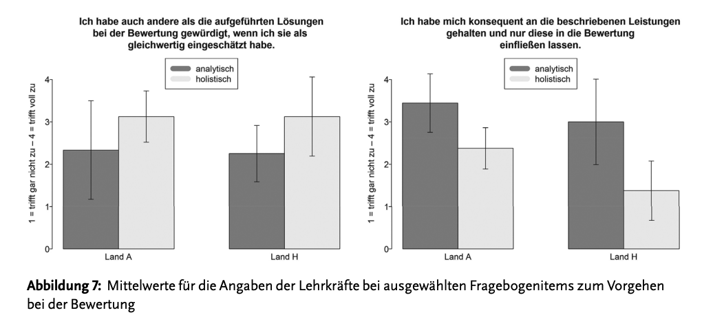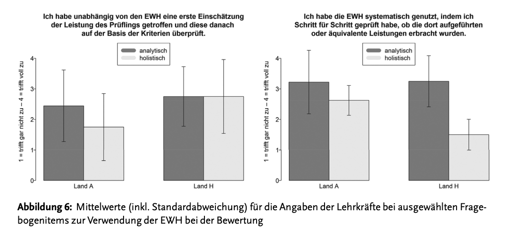 Pauline Schröter und andere haben 2022 verschiedene Formen zur Bewertung von Abituraufsätzen untersucht (pdf, ab S. 213). »Analytische Erwartungshorizonte« enthalten Kriterien, die separat zu bewerten sind, bevor eine Gesamtbewertung erfolgt, bei »holistischen Erwartungshorizonten« ist das nicht der Fall.