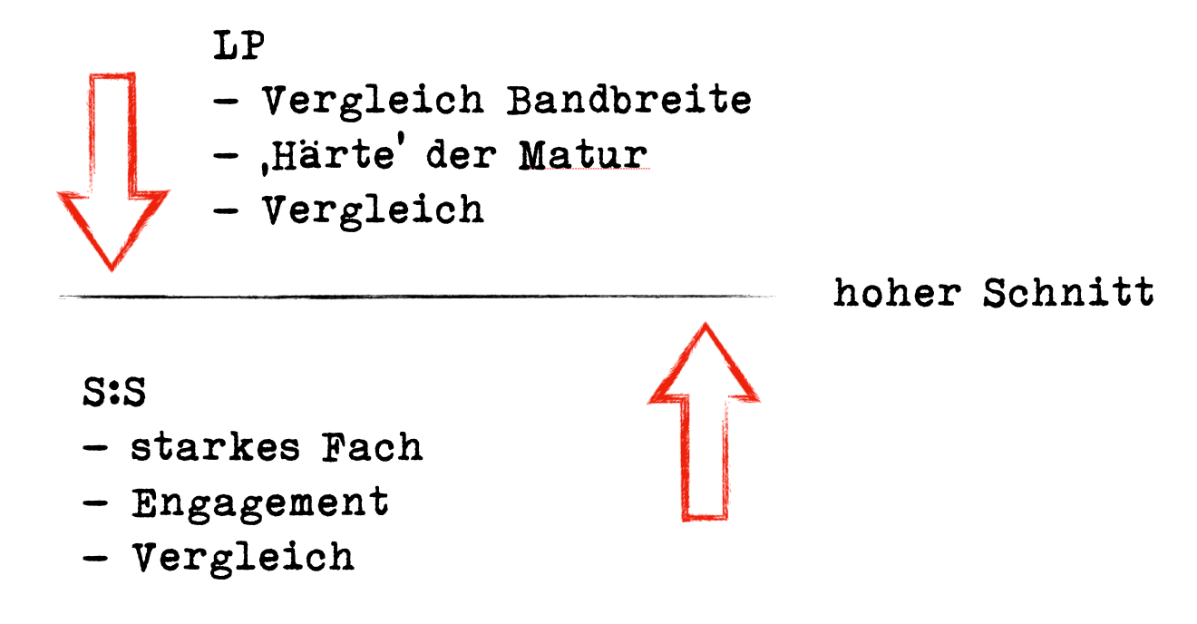 Ein Treiber für hohe Noten ist auch der Vergleich unter den Schüler:innen, die gegenseitig ihren Aufwand etwas runterspielen und so oft den Eindruck haben, deutlich mehr gearbeitet zu haben als andere, obwohl das möglicherweise nicht stimmt. So erwarten viele Schüler:innen eine bessere Noten als diejenigen erhalten, mit denen sie sich vergleichen – was Lehrpersonen wiederum wissen. Mit höheren Noten können sie so gewissen Konflikten aus dem Weg gehen.