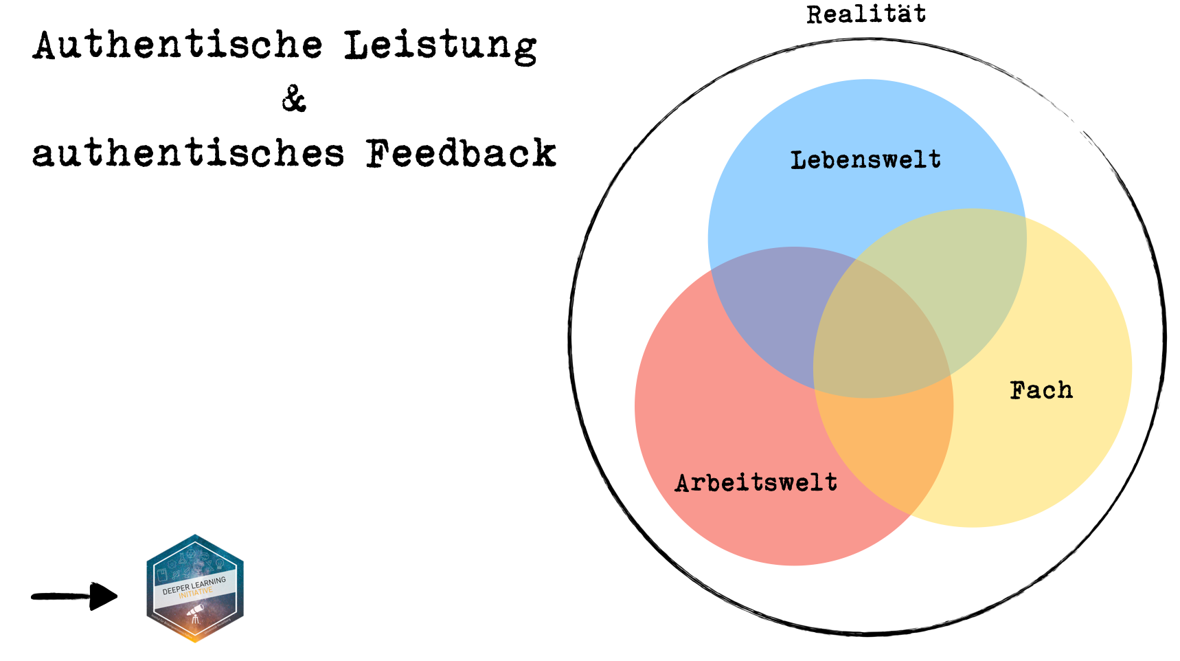 Betrachten wir die aktuelle Lebens- und Berufswelt, den medialen Alltag sowie die Anforderungen, die wir als Gesellschaft an kompetente Erwachsene stellen, so ist es naheliegend, schulische Arbeiten daran auszurichten. Die Grundeinsicht besteht dabei darin, dass Schüler:innen authentische Leistungen erbringen sollen, die in ihrer Lebenswelt, in den entsprechenden Fachgebieten sowie in der Arbeitswelt eine Bedeutung hätten. Denkbar wäre also z.B. ein kurzes Video über ein Thema aufzunehmen, das im Fach als Wissensvermittlung sinnvoll wäre, formal den Sehgewohnheiten junger Menschen entspricht und in der Arbeitswelt genutzt werden könnte, um in Betrieben die Sicherung und Weitergabe von Wissen zu ermöglichen.