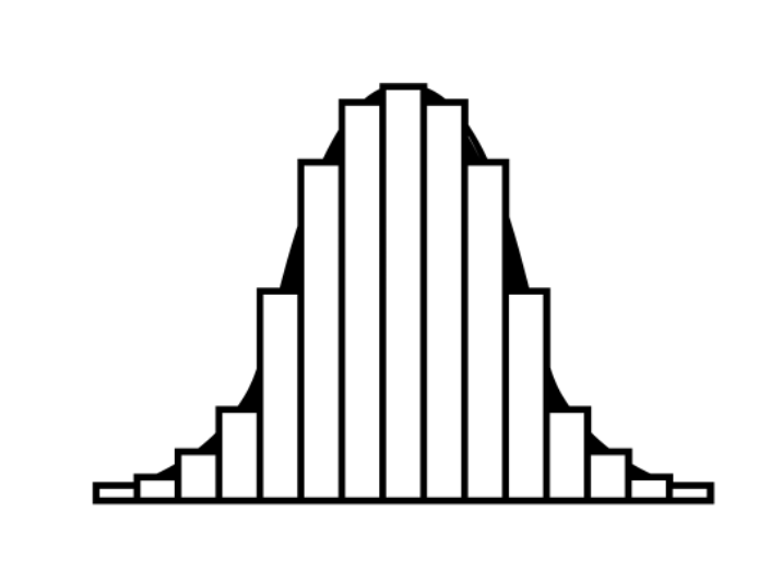 So sieht eine Normalverteilung aus. Die Verteilung beschreibt eine zufällige Streuung von Messwerten – wenn wir z.B. das Gewicht von neugeborenen Kätzchen messen würden, ergäbe sich bei einer großen Zahl von Messwerten eine Normalverteilung.