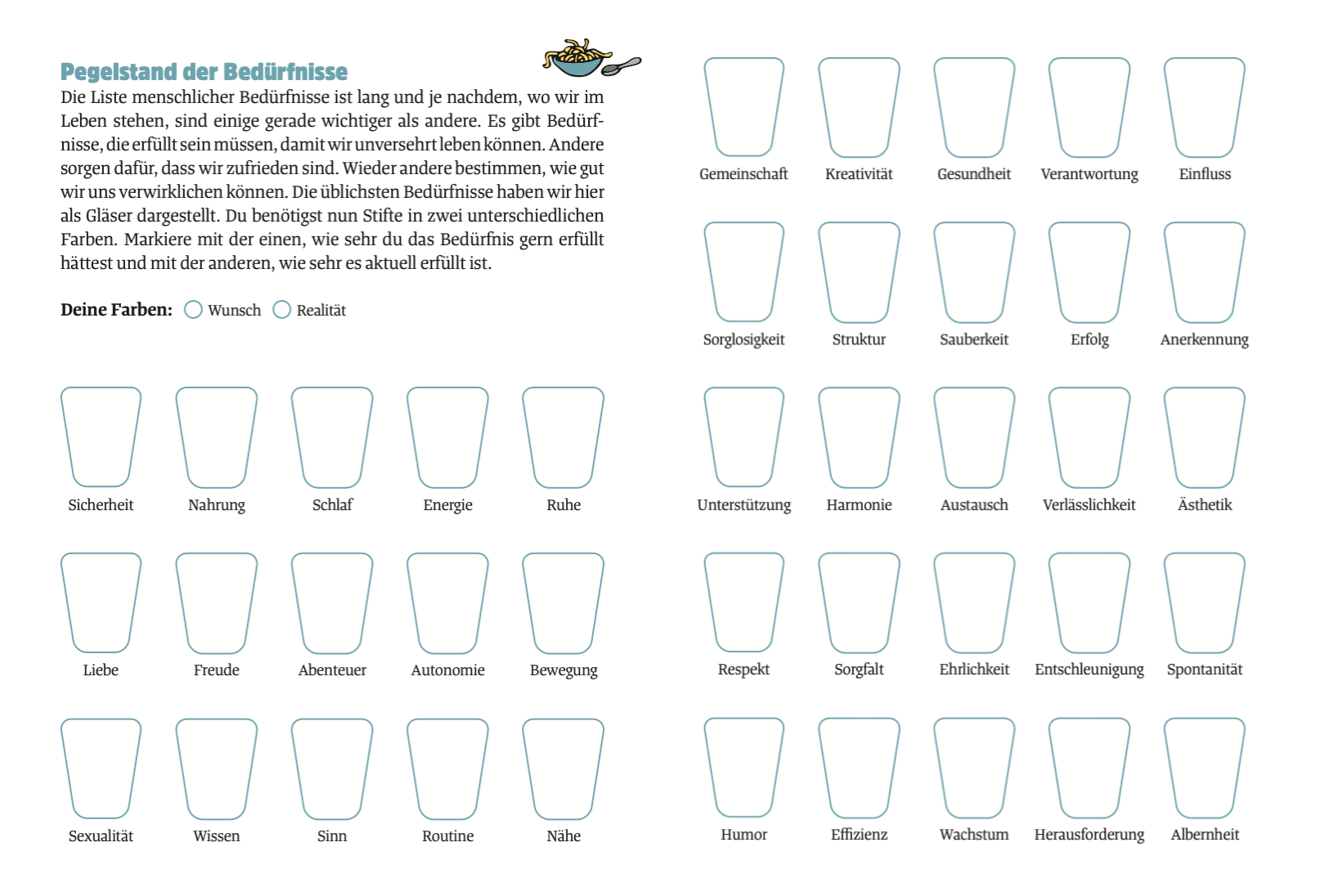 Benotete Prüfungen erfüllen diese Grundbedürfnisse in der Ansicht der Autoren nicht. Betrachten wir umfassendere Darstellungen von Bedürfnissen, so wird klarer, welche davon von Tests und Noten angesprochen werden: